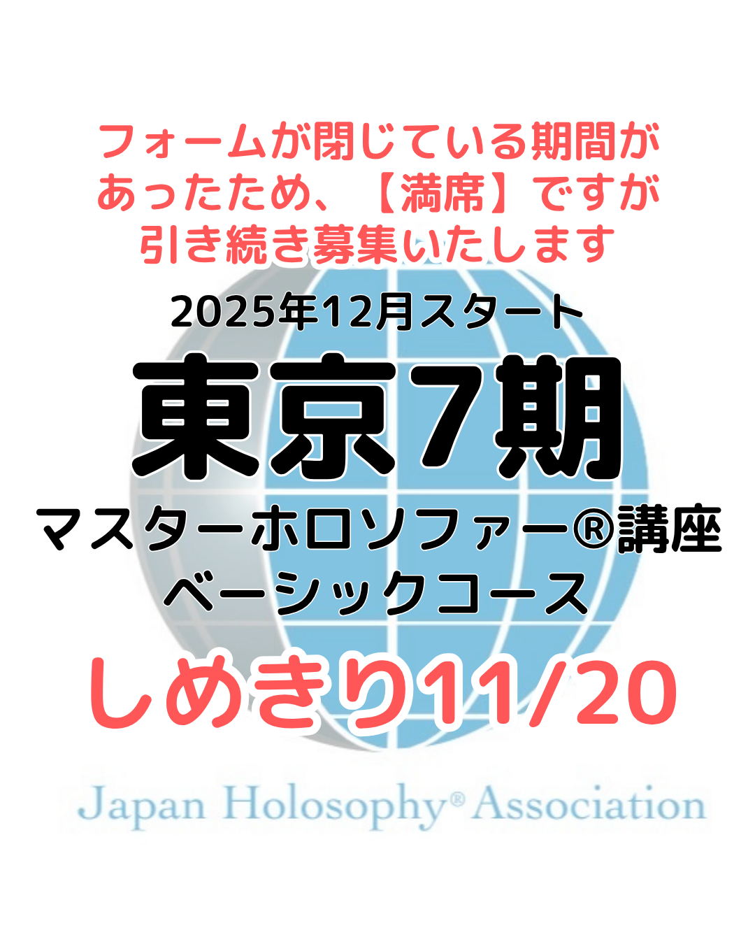 MasterHolosopher®講座Basicコース 東京7期に関するご案内です。